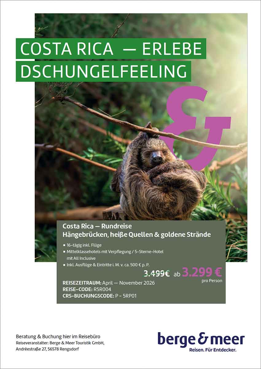 Costa Rica, Rundreise, 16 Tage inkl. Flug, div,. Termine Apr-Nov. 26 Schon ab 3.299,-€ p.P. im Doppelzimmer